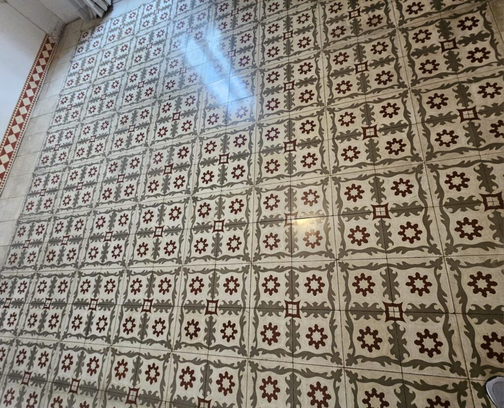 Stairs lead to a landing space with a small double bedroom and a lovely size bedroom with original floor tiles and wooden doors.  This room also has a Juliet balcony.