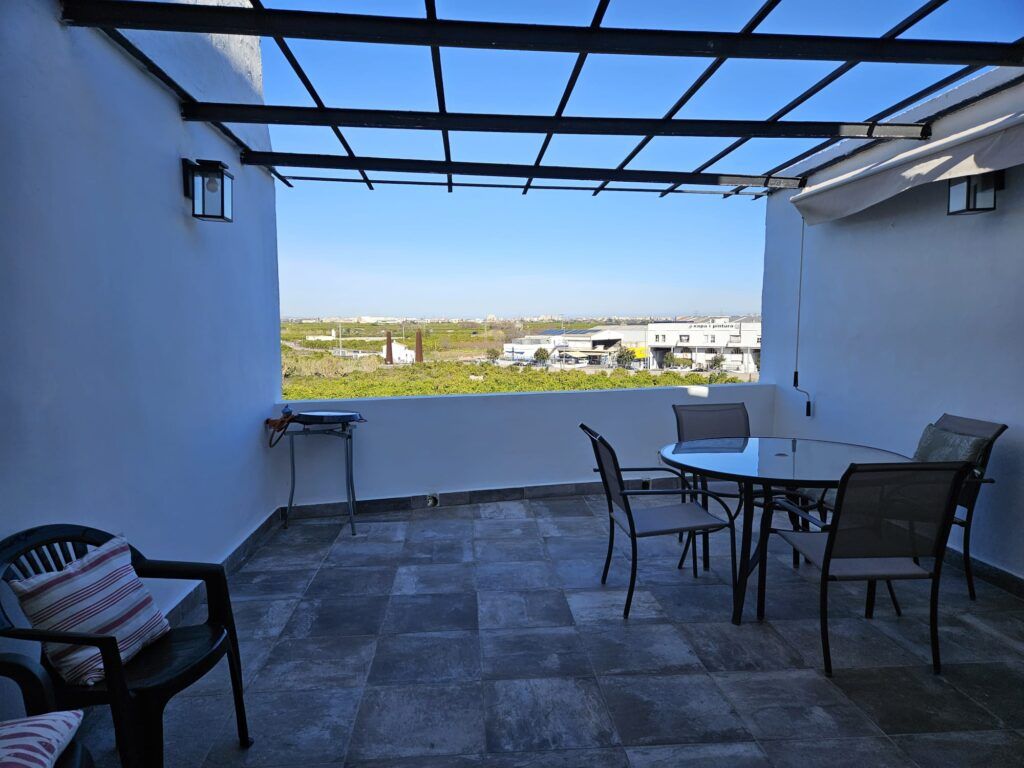 The front door opens to a cosy lounge area and then on into a dining room.  From here a light passageway leads to a bedroom, a fully fitted kitchen and a shower room, all with sliding barn style doors.  Off here is ground floor outside space in the form of a good sized terrace with views over the orange groves and a utility area.